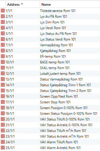 Når man starter et nytt prosjekt, kan det være greit å starte med et rom og en rekke gruppeadresser.
